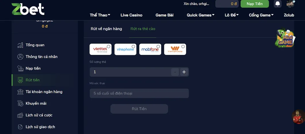Người chơi có thể tham khảo 1 vài phương thức sau đây để tiến hành rút tiền khỏi hệ thống ZBET.